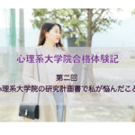 Meg心理系大学院受験体験記~【第2回】心理系大学院の研究計画書で私が悩んだこと 連載|全3回 心理系大学院 受験体験記 ── 迷い、苦戦し、立て直した日々のリアルな記録 ── K 執筆者:K講師 西南学院大学卒業、同大学大学院修了。公認心理師。現在、Meg心理師国試予備校にて講師 […] 公開済み: 2026年4月14日更新: 2026年4月14日作成者: iwasakiカテゴリー: お知らせ, コース, 大学院試験対策コース, 心理師応援コンテンツタグ: 心理学部, 心理学部大学院, 心理学部大学院試験